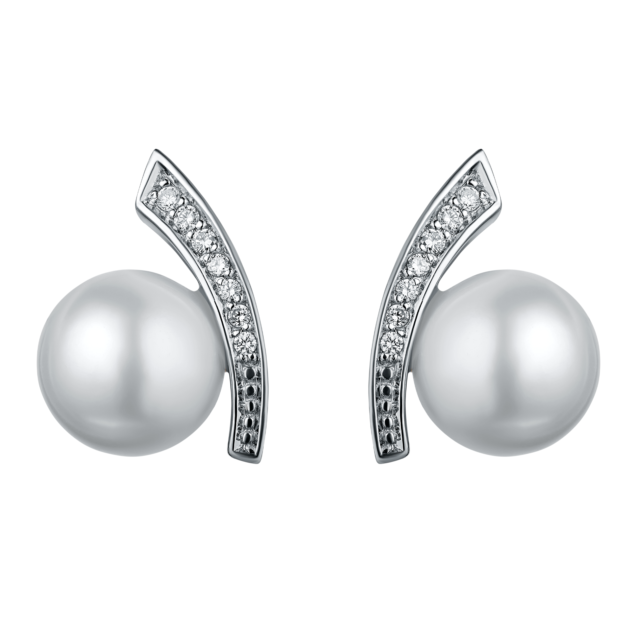 18k white gold pearl diamond earring
