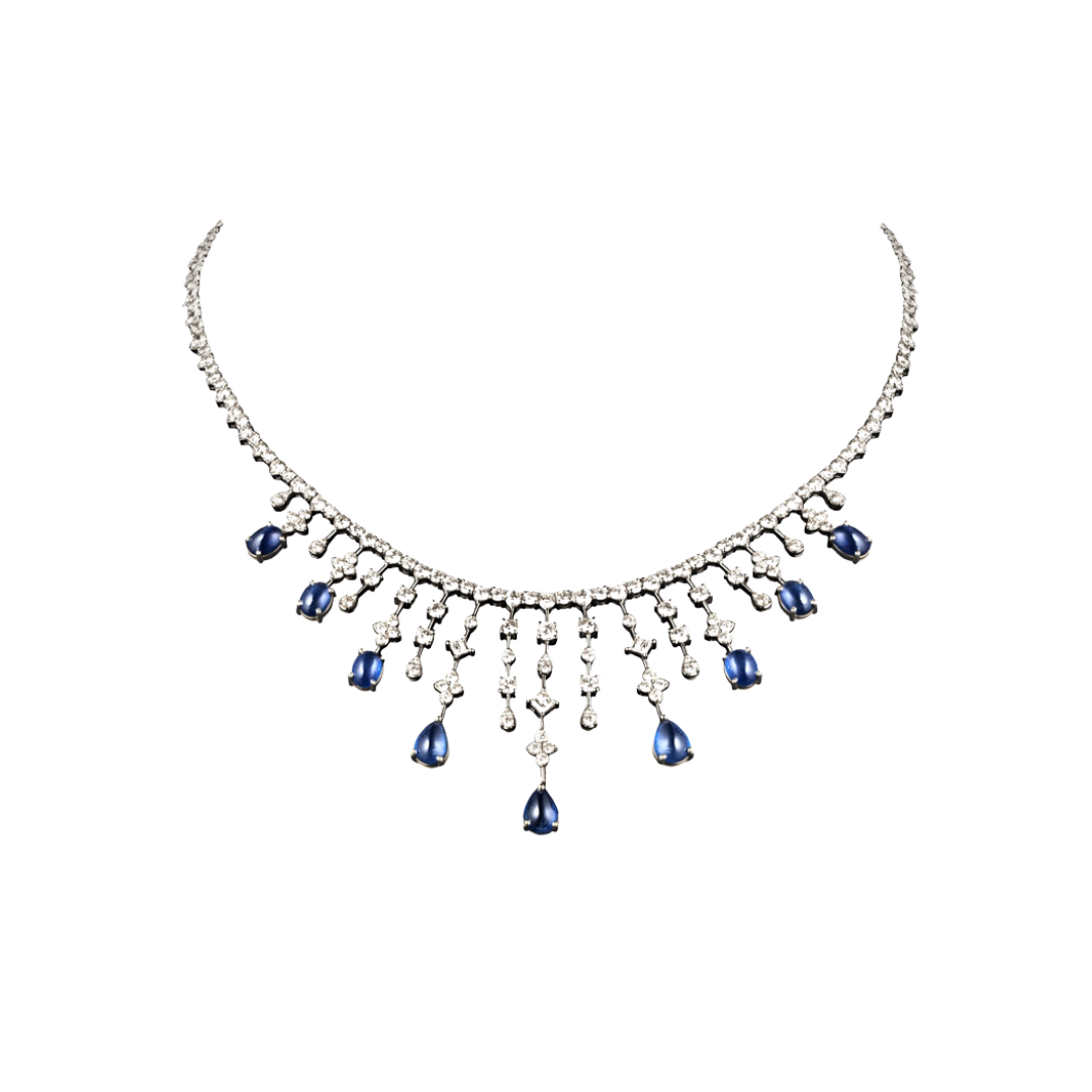 18k white gold CAB Blue sapphire diamond?necklace