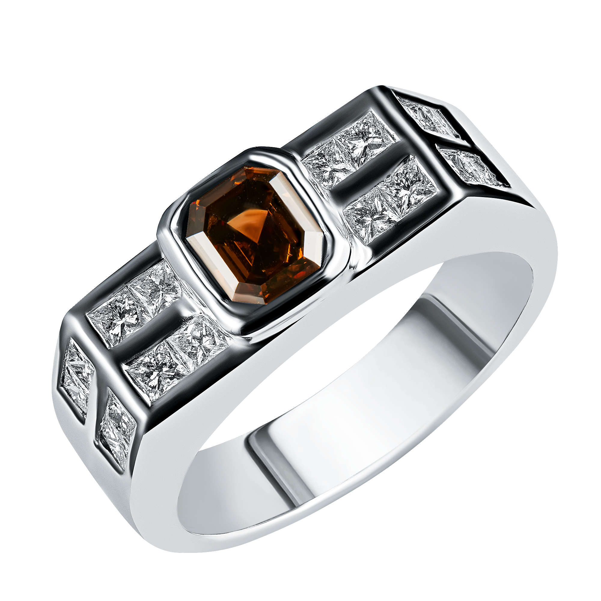 18k white gold brown fancy diamond & princess diamond ring