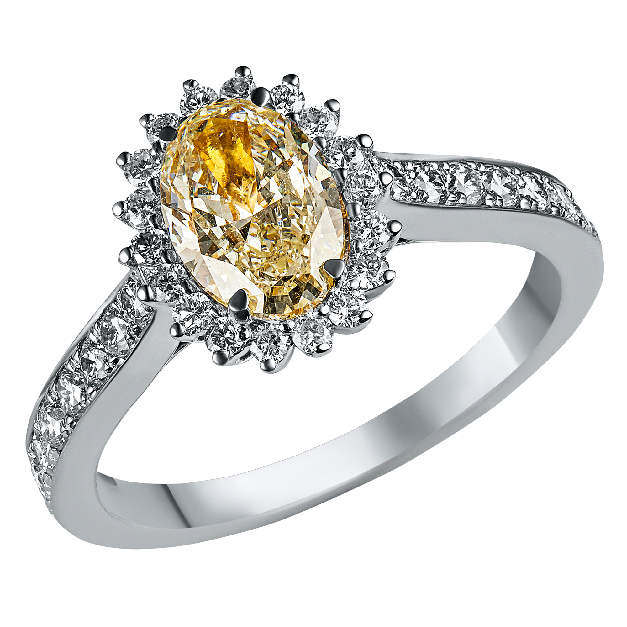 18k white gold oval yellow fancy diamond ring